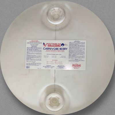 Carnivore Berry is a ready-to-use, liquid bacteria waste digester and odor counteractant. Formulated with a blend of cultured live bacteria enzymes and bioactive solubilizing agents, this product is highly effective in drain lines, grease traps, lift stations, sewage treatment systems, water treatment plants and septic tanks. When used as directed, this product will eat away grease and other organic wastes that line the pipes and create odors and slow-flowing drains. It will also digest uric salts on floor tiles around toilets and urinals. Carnivore Berry is an extremely effective odor eliminating solution in garbage and waste receptacles, porta-toilets, carpet and other hard surfaces.